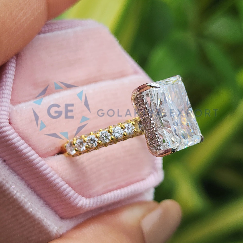 Lab Created Diamond Ring Radiant Cut Double Hidden Halo Ring